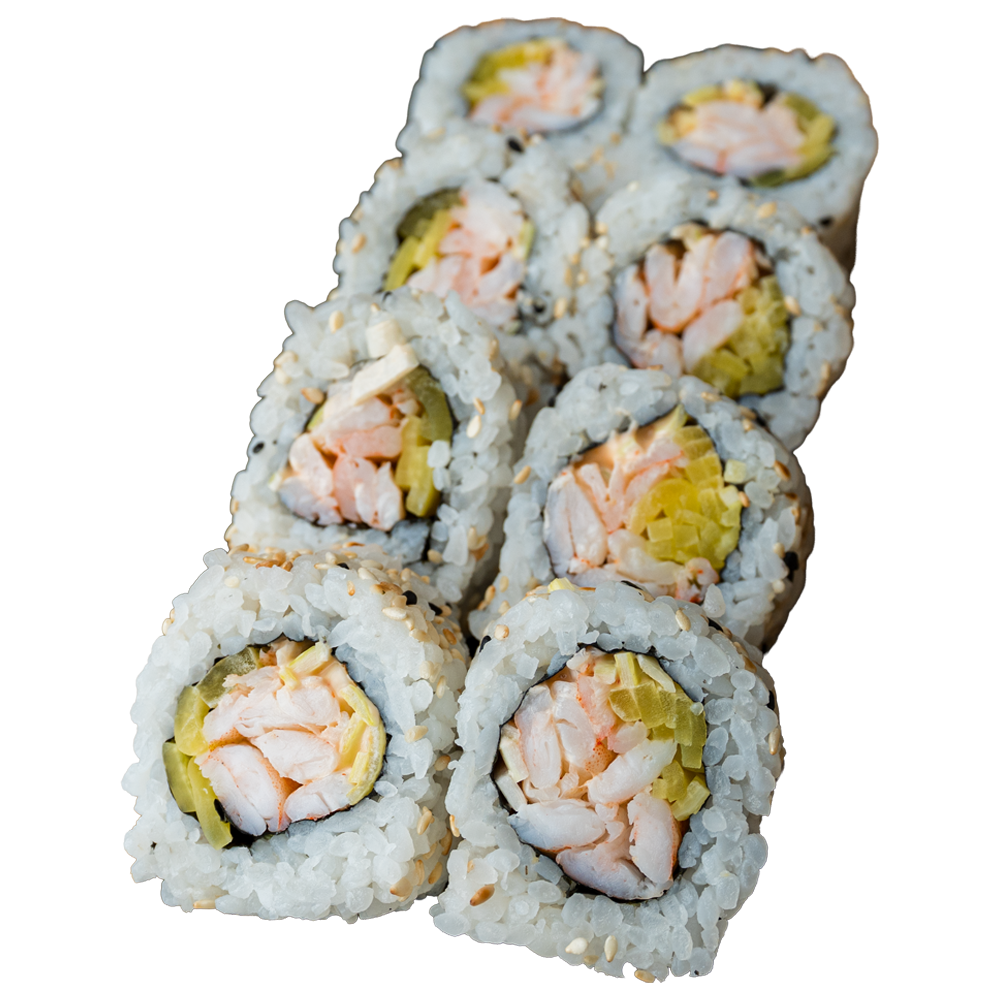Krewetka gotowana, spicy mayo, por, oshinko