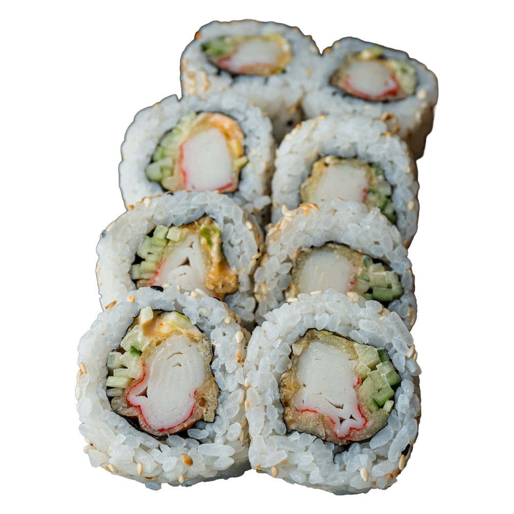 Paluszek w tempurze, spicy mayo, por, ogórek