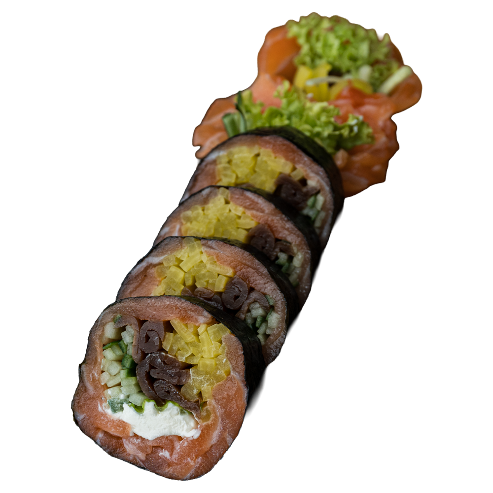 Łosoś, serek, ogórek, oshinko, kanpyo