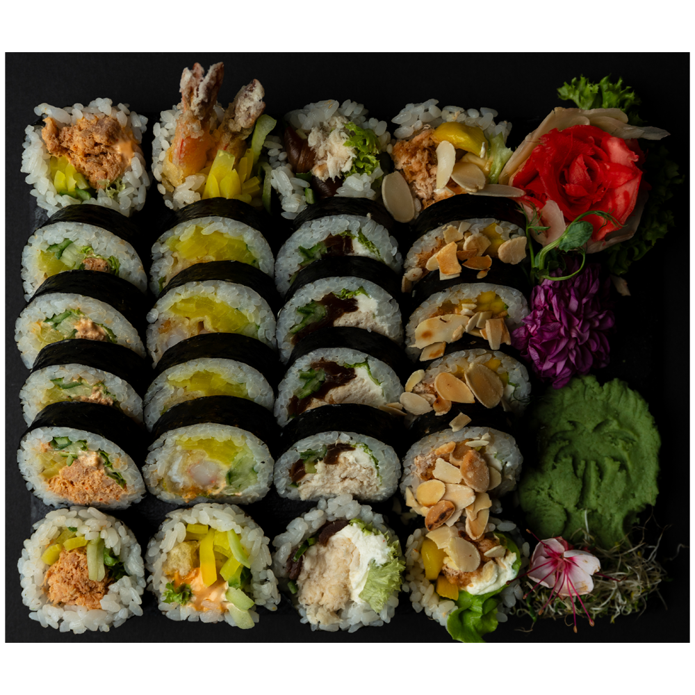 Futomaki z pieczoną maślaną, serkiem, ogórkiem i kanpyo – 6 szt.