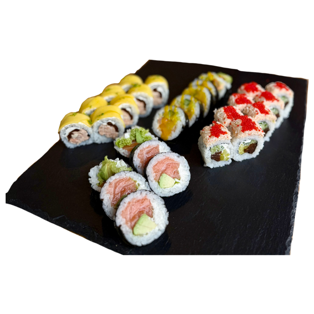 Unikalne sushi i rolki tworzone według tradycyjnych japońskich receptur z miłością do detali. Odkryj doskonałe połączenie świeżych składników i wyrafinowanych smaków w naszym menu.
